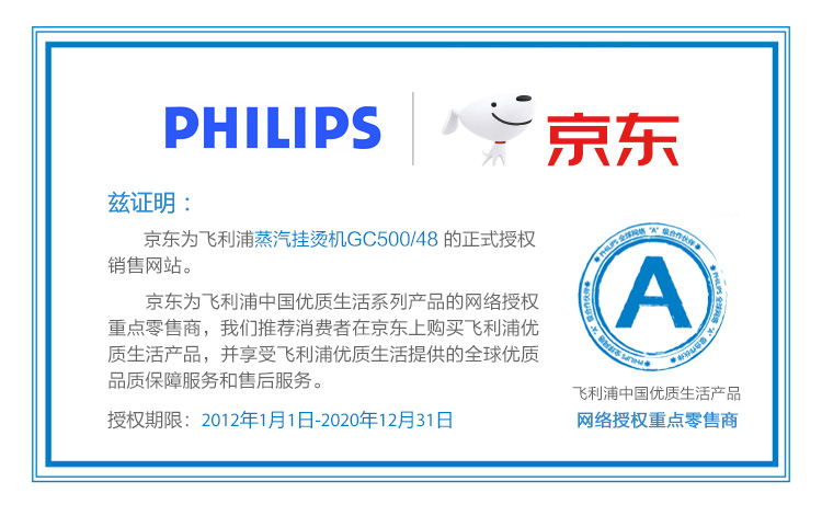 商品名称:飞利浦 (PHILIPS) 蒸汽挂烫机 家用单杆1500W熨衣 GC500/48 (GC501/GC502升级款)