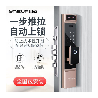 因硕指纹锁家用防盗门智能锁指纹密码锁远程控制大门防盗电子门锁全自动开锁F8 宝石黑【免费安装+瑞士FPC指纹头+三年质保】