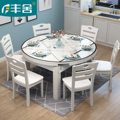 乐玛仕(Rogmars)餐桌 现代简约实木折叠餐桌椅组合 小户型简约餐桌 胡桃色(1.3m不带电磁炉) 单个桌子