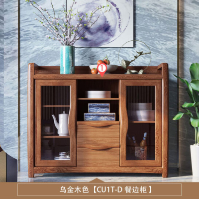 林氏木业 餐边柜 现代新中式茶水柜 厨房储物厨边柜子CU1T 乌金木色【CU1T-D餐边柜】 双门