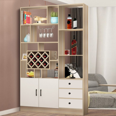绘清轩 酒柜 客厅酒架餐边柜隔断柜玄关柜现代简约多功能门厅间厅储物屏风置物架 暖白色 两门三抽120*30*200