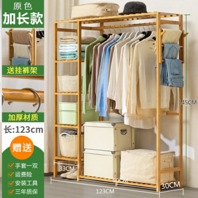 木马人 简易楠竹实木衣帽架卧室衣架落地挂衣架立式楠竹衣服架子现代简约鞋架置物架室内收纳架 原色-加长版柜式【送裤架】