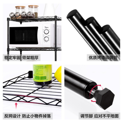 溢彩年华 厨房置物架落地微波炉架子家用货架仓储储物架烤箱架移动收纳书架杂物架多层置物架1711-BK