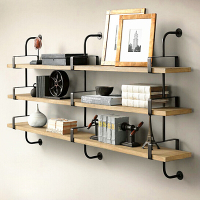 小木槿墙上置物架墙壁挂式一字隔板书架铁艺实木墙面搁物架装饰创意工业风咖啡厅墙架背景墙式复古墙面书架 三层150cm长